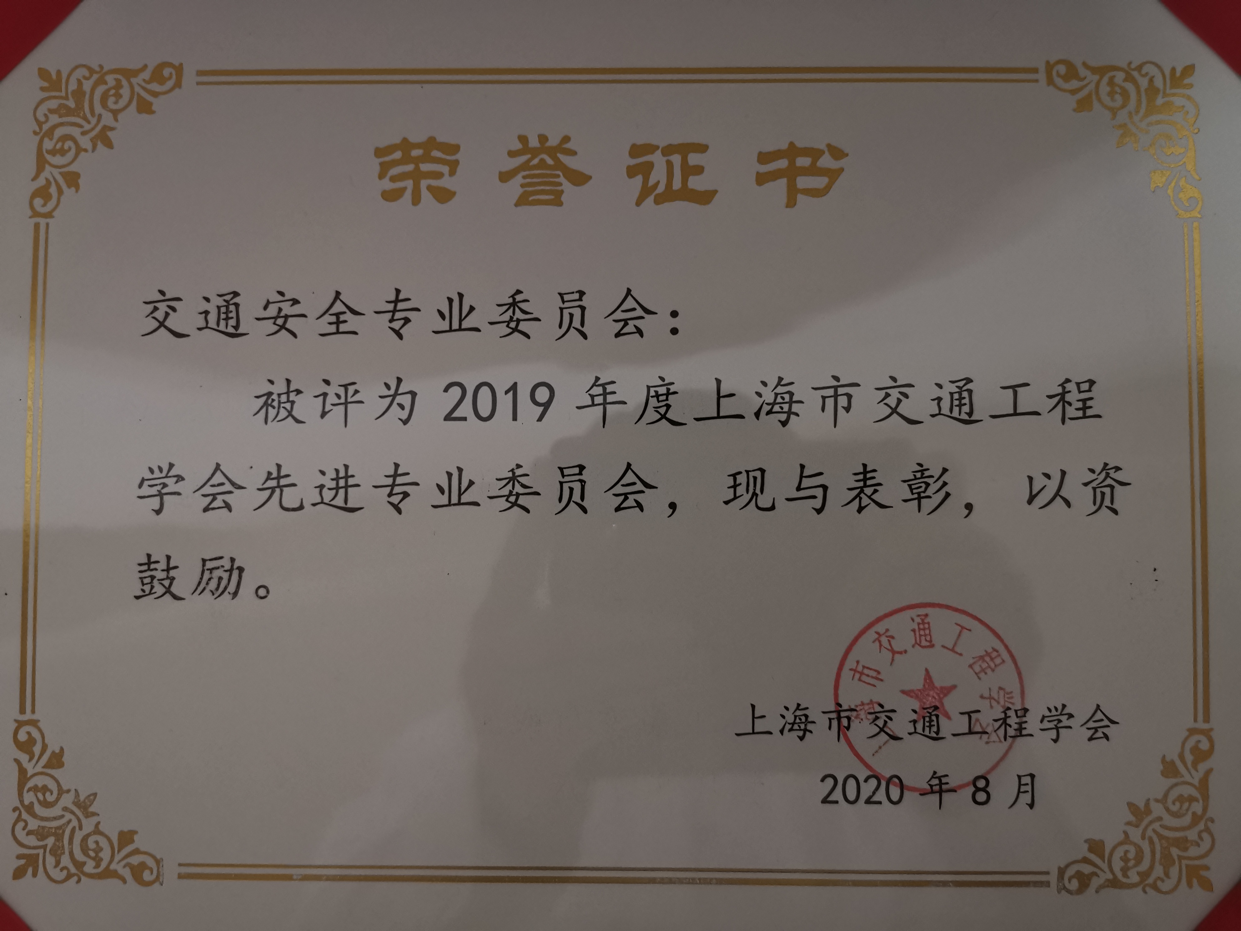 王雪松教授担任主任的交通安全专业委员会,被评为2019年度上海市交通工程学会先进专业委员会。
