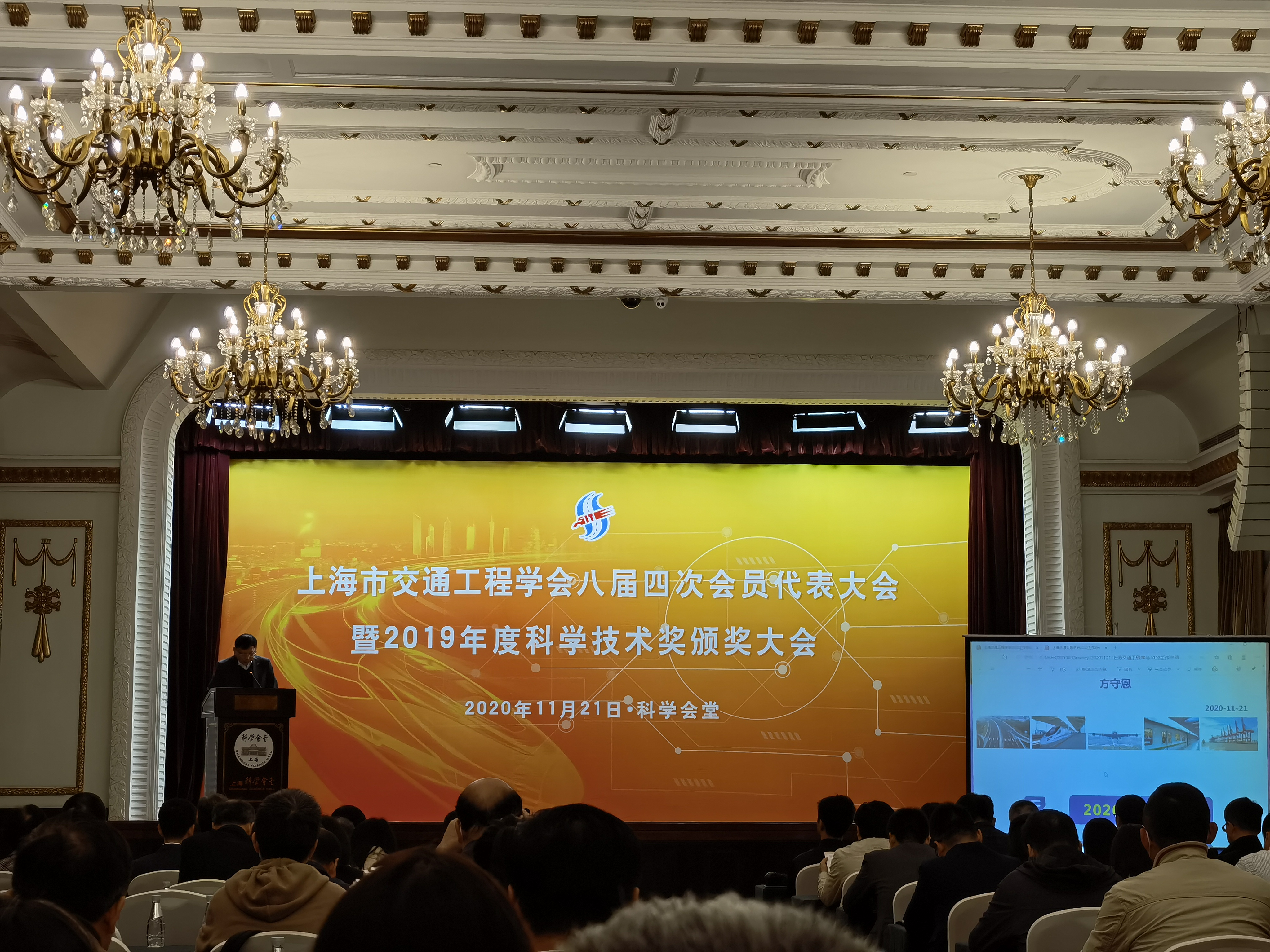2020年11月21日下午,上海市交通工程学会第八届四次会员代表大会暨2019年度科学技术奖颁奖大会在科学会堂召开。本次会议由副理事长凌建明教授主持会议。市科协副主席陈丽、市住建委总工刘千伟出席会议并致辞。学会理事长方守恩教授、监事长严炯浩和秘书长朱惠君,分别就《上海市交通工程学会2020年工作总结暨2021年工作计划》、《上海市交通工程学会第一届监事会2020年工作报告》和《上海市交通工程学会2020年财务工作报告》进行工作汇报,会议全员审议通过。