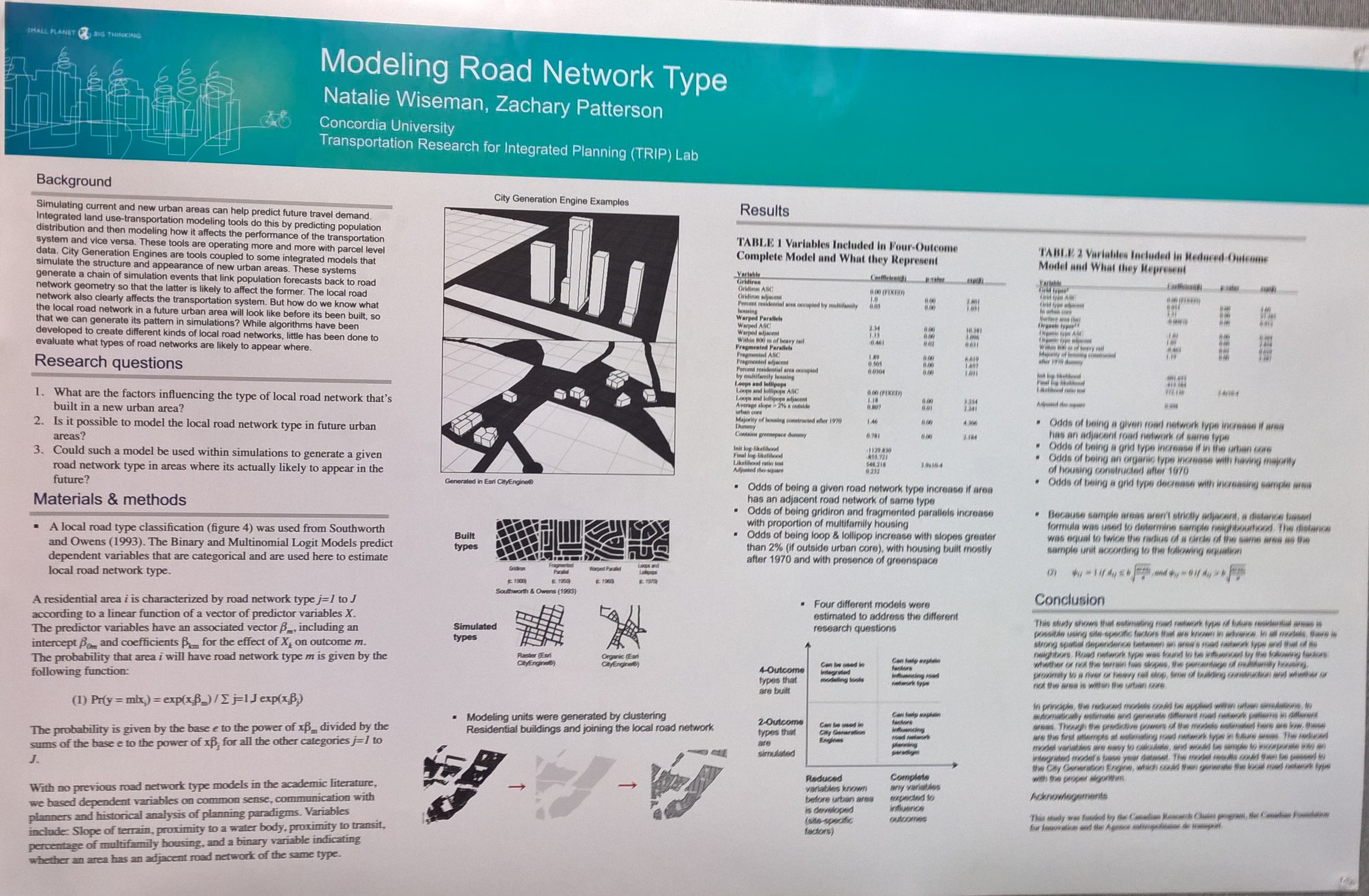 论文(16-5424:Natalie Wiseman., Zachary Patterson. Modeling Road Network Type)通过建立多项logit模型分析不同影响因素对于路网形态的影响,模型结果表明地形坡度、城市发展阶段、周边是否有河流以及邻近路网是否类似等变量均对路网形态有显著影响。论文指出基于该模型可以准确预测未来城市区域的路网形态。