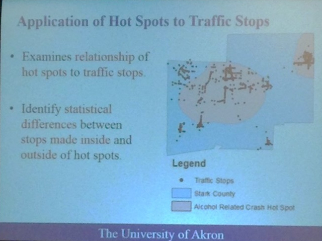 大数据背景下,交警希望通过科技手段提高执法水平,广州市道路交通安全辅助决策系统也应运而生。该系统中有涉及到违法数据和事故数据的融合,比如有现场执法与事故分析,提出了执法欠缺系数等,有违法和事故叠加分析,考虑的出发点都是认为事故多发的区域应该增派警力。但是这个逻辑是否正确,还缺乏理论证实。国外交警现在也注重数据驱动式执法(data driven enforcement),但是Maistros和Schneider提出,交警在执法时依旧常常更依赖于个人经验,而非数据推断。他们通过对比分析事故热点区域内外交警停车(traffic stops)的执法差异,发现事故区域内的停车更容易产生针对伤亡事故的执法和安全带使用的执法。这说明针对事故区域增派警力是合理的(TRB论文编号16-5209:Maistros, A., Schneider, W. H. A comparison of overtime patrol stops made inside and out of cluster identified hot spots.)。