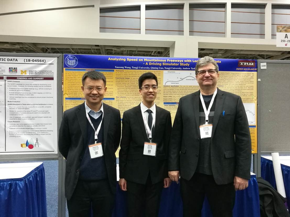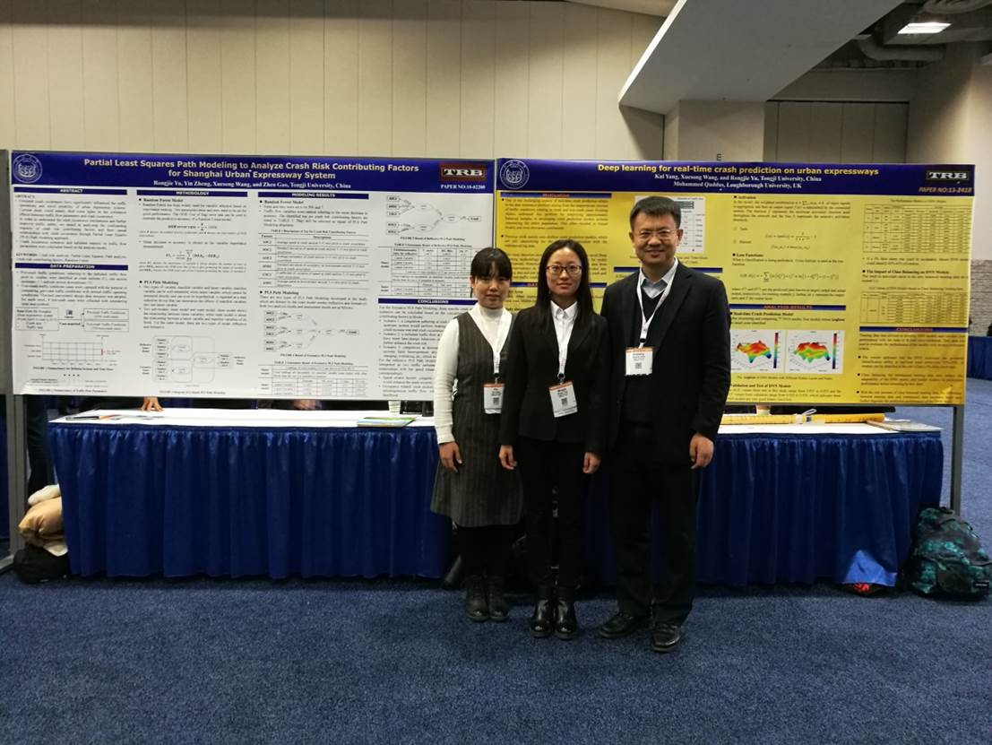团队共有8篇论文被本次TRB年会收录,并和其他学者合作6篇论文,研究内容涉及基于驾驶模拟器的道路设计安全评估、事故统计建模、信息化交通安全管理、自然驾驶研究等。会议期间,团队成员以不同形式展示了论文成果,广受好评。