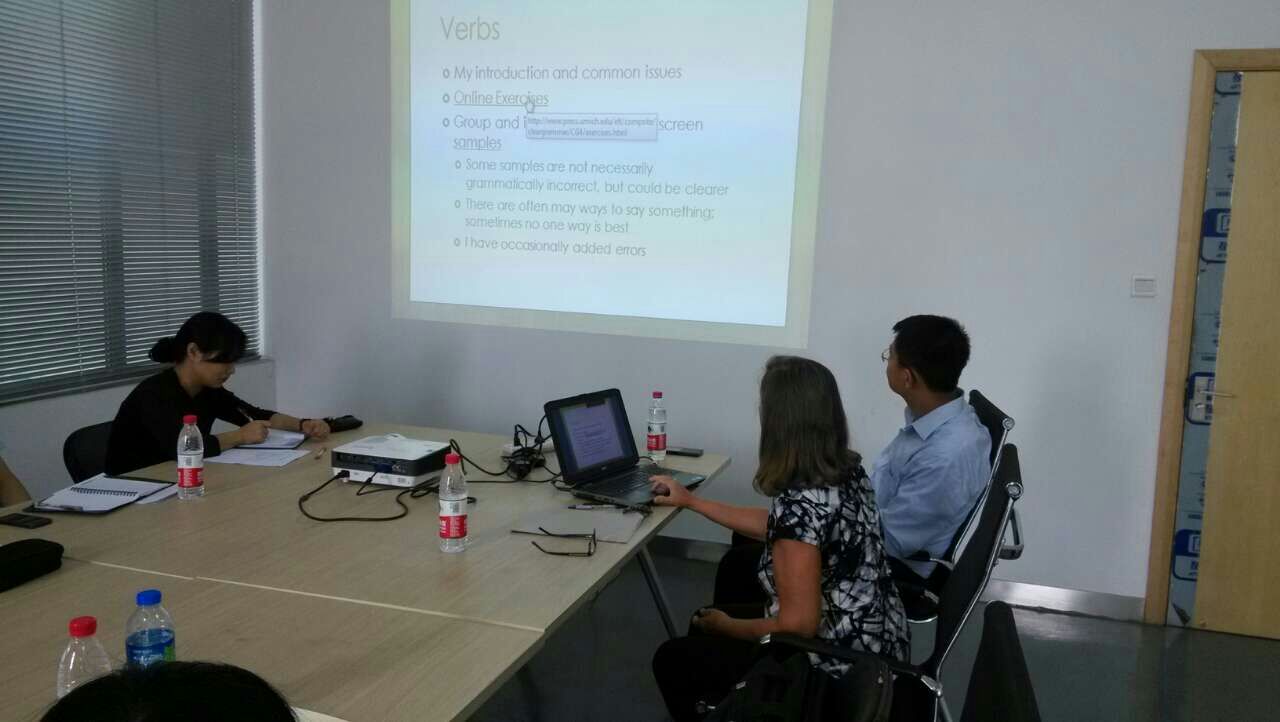 5月29日上午Barb女士在交通运输工程学院驾驶模拟器实验室,向同学们讲解了英文论文写作的目的,及语法中常遇到的时态、动词、名词、连词等基础且易错问题。下午Barb女士以同学们的论文为样例,指导同学们进行小组讨论如何在文章的组织、结构及表达上提出更好的写作方式。经过培训和讨论过程,同学们更加了解了自己在英文论文写作中存在的问题及注意事项。