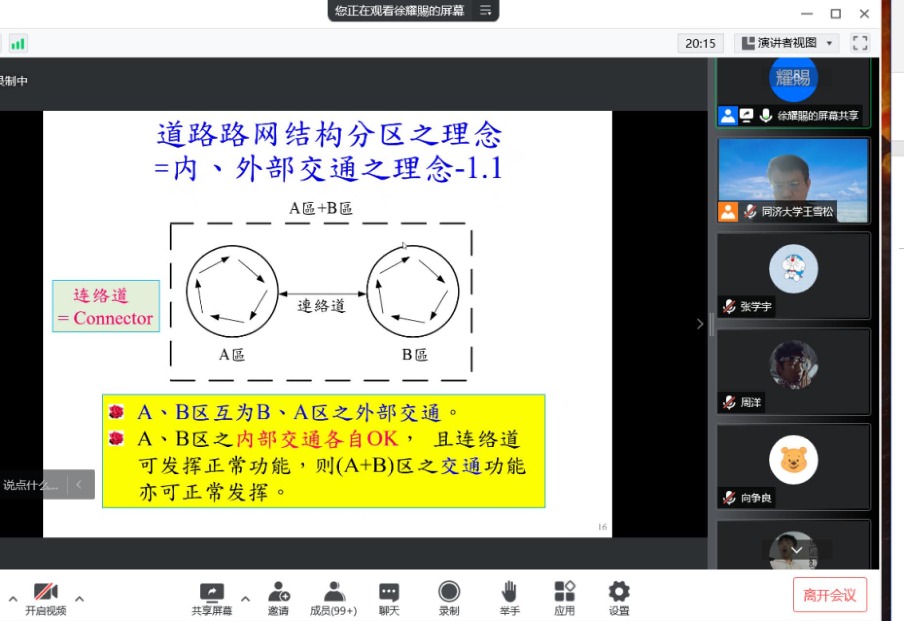 徐耀赐教授以其丰富的国内外工作经验和深刻的理解,在短短四次报告中为大家系统呈现了道路交通功能八阶理论的主要内容,为道路路网的规划、设计、管理等阶段提供了非常好的见解和建议。