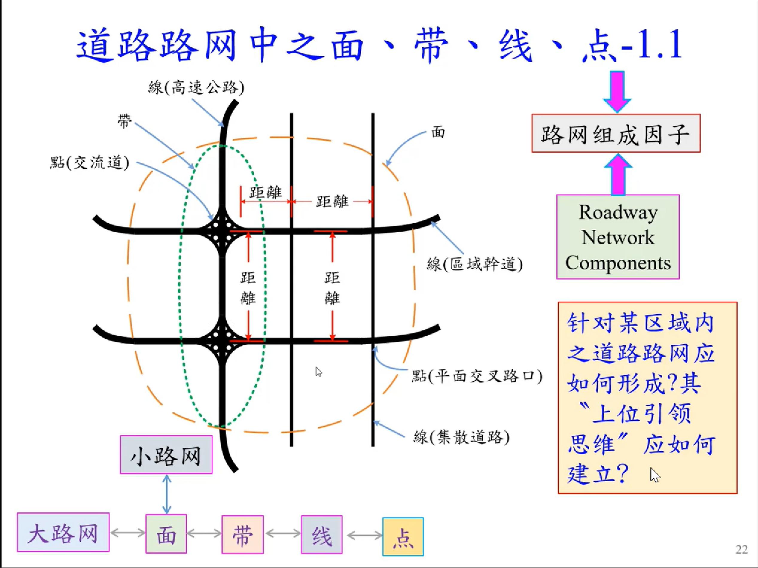 徐耀赐教授5月22日的讲座介绍了高、快速公路出入口匝道端点与地区道路系统的相关性。徐耀赐教授指出Rule of Separation、Access Control Distance与“路网之结构分区”、“内、外部交通”规划设计理念完全相融,避免相接道路的互制效应与日后的道路交通功能退化,建构具有合理性的道路路网结构。当某道路具有M-A Dynamic现象时,道路交通工程规划设计者应综合两个主要因素及其他次要因素,专业判定此道路交通功能属性或位阶。徐耀赐教授强调Florida DOT(2021)对高、快速公路出入口匝道端点与第一个接入、中央分隔带开口、信号交叉口的距离均有相关规定,国内也有必要研究建立这些准则。
