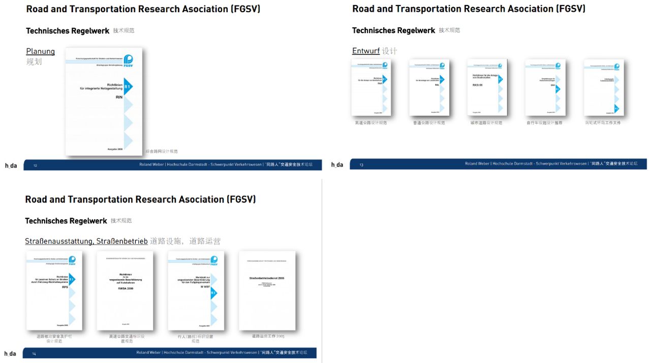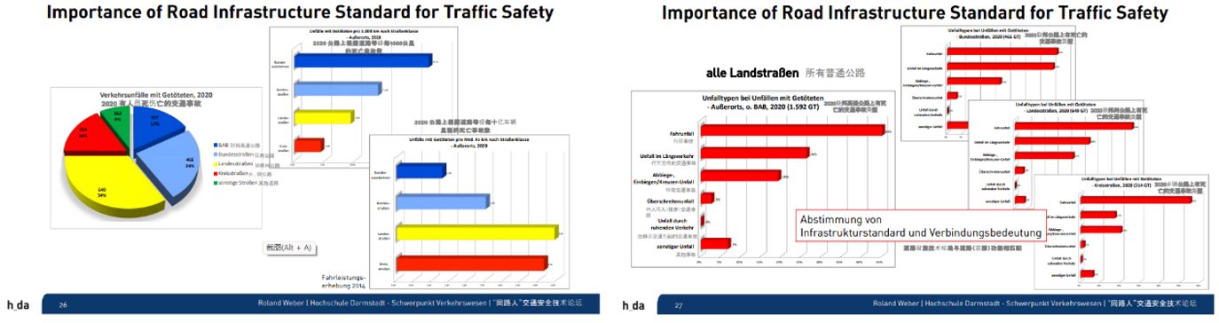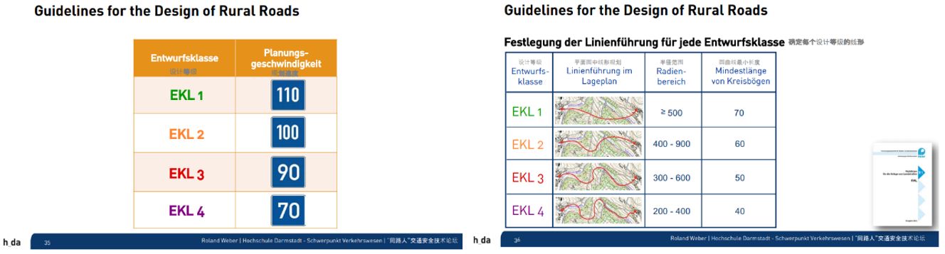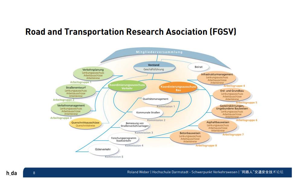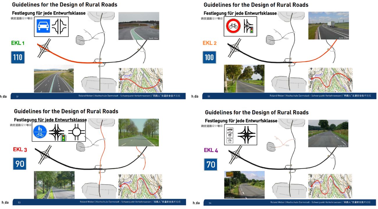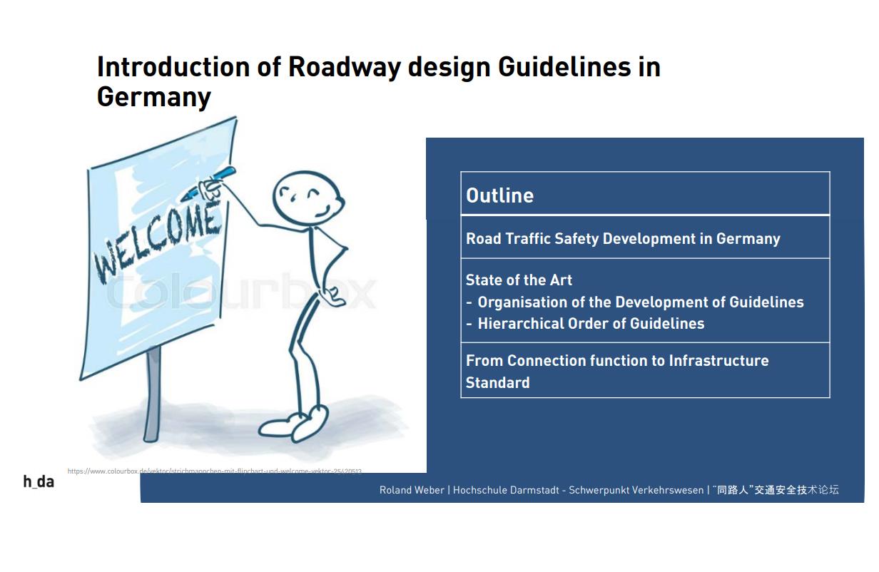 本次讲座,Roland Weber教授重点介绍了德国道路交通设计规范体系。首先对德国道路交通安全发展历程进行简单回顾,随后从道路交通相关组织机构的发展、不同道路等级的设计规范等方面对技术现状进行介绍,并以普通公路为例对设计规范的确定进行详细说明。