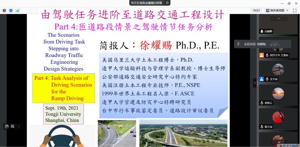 本次系列论坛主办单位为同济大学、公安部交通管理科学研究所、交通运输部公路科学研究院、“一带一路”国际交通联盟(BRITA)、上海市交通工程学会、上海市交通委员会科学技术委员会、中国公路学报、中国智能交通协会交通安全专委会。将邀请逢甲大学徐耀赐教授就“由驾驶任务进阶至道路交通工程设计”进行讲座,活动由交通安全学科创新引智基地(“111项目”)资助。