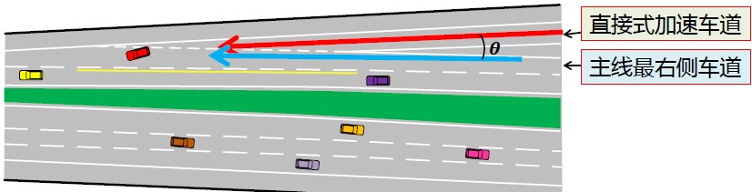 加速车道长度需确保匝道车辆有充足的加速时间。驾驶人在此区段可自行汇入主线。