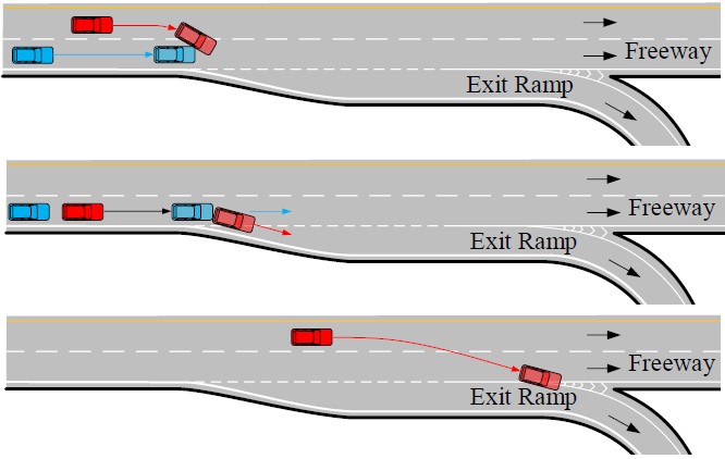 1)主线驾驶段(Mainline Driving Segment):出口匝道起点上游远处的车辆依车道先行分流。