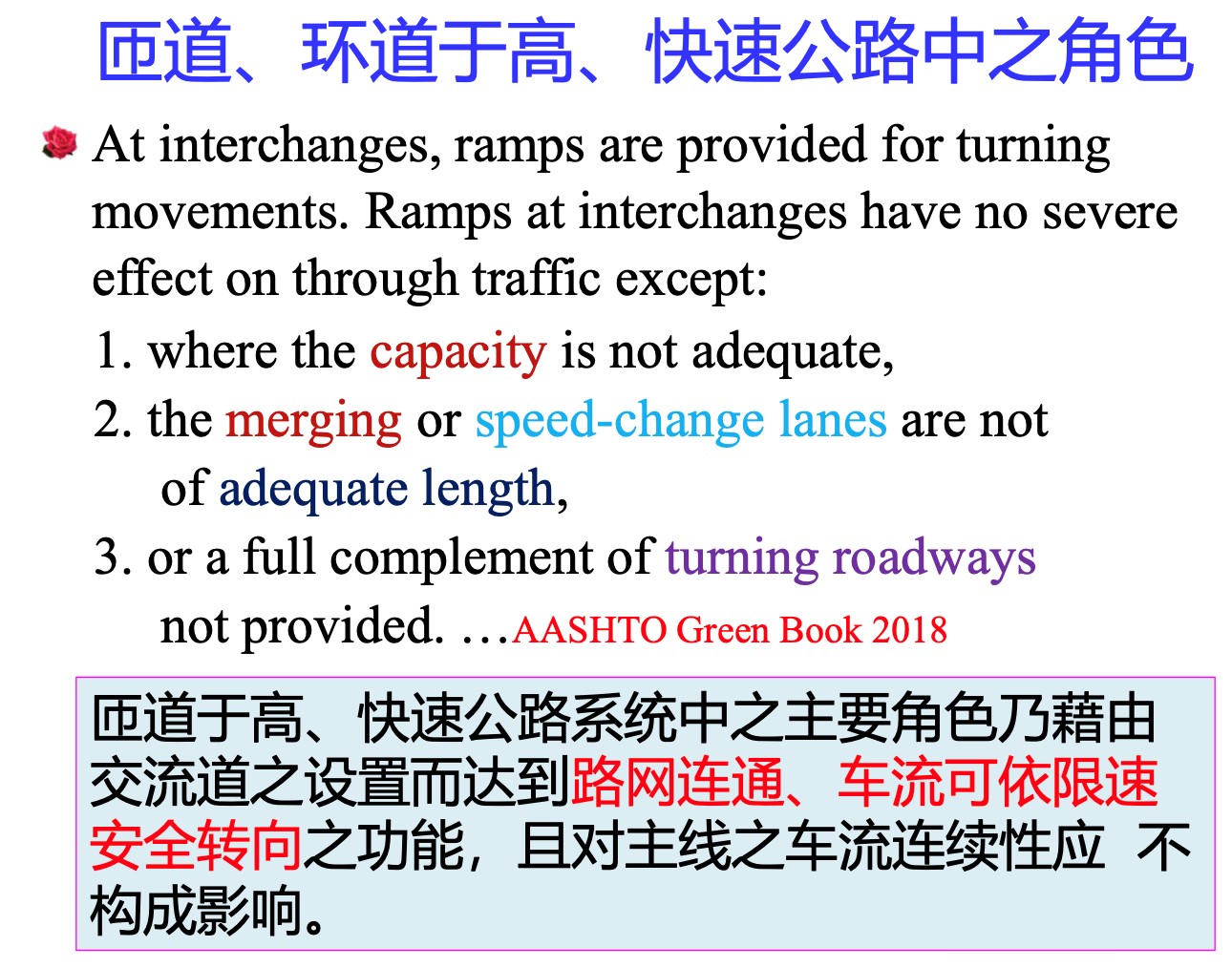 匝道在高、快速公路系统中设置的主要目标是藉由交流道的设置而达到路网连通、车流可依限速安全转向的功能,且对主线的车流连续性应不构成影响(图1)。
