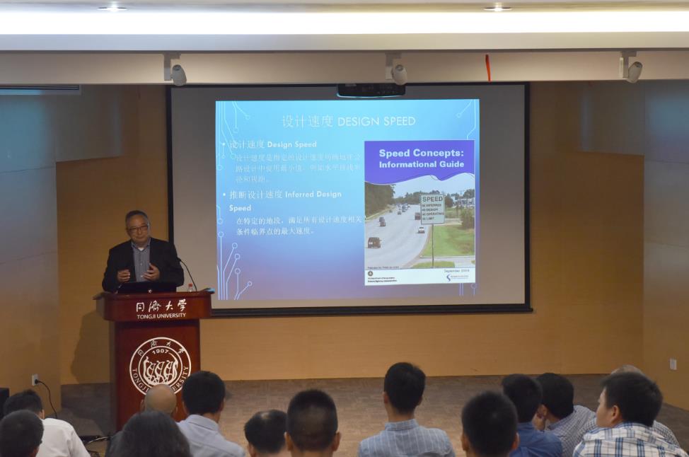王雪松教授与大家分享了速度与安全的关系研究的最新成果。首先从限速标准不统一、限速标志不足、部分相邻路段限速降低梯度值过大、限速区长度过短、车道间存在限速差等方面对城市道路及高速公路纵向及横向限速存在的问题进行了阐述。接着,王教授介绍了城市主干道、城市快速路及高速公路等不同类型的道路在速度与安全关系研究中所采用的速度及速度变化模型、数据分析及实验结果。最后,对各类道路速度与安全的基本关系、限速设置方法、限速纵向设置关键指标及高速公路断面限速设置等研究进行了总结和展望。