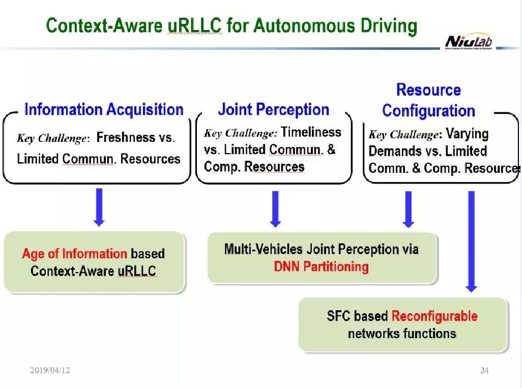 清华大学电子工程系的牛志升教授则着力于研究适应自动驾驶的、情境感知的可靠低延时V2X通信网络,探索如何结合应用需求为智能网联汽车间的V2X通信提供高可靠、低延迟的支持。牛教授介绍了最新的研究成果,比如通过对深度神经网络的切分进行多车联合感知,以及基于Service Function Chain (SFC)的可重配置网络。