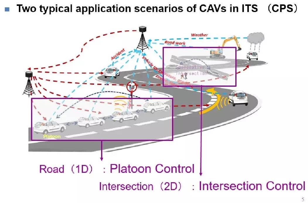 智能网联汽车组成的交通系统中典型的应用场景:车群控制