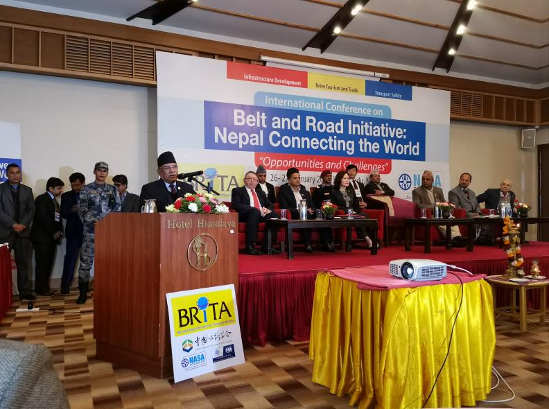 2月26日-27日,“一带一路”国际交通联盟尼泊尔研讨会暨“尼泊尔通过‘一带一路’走向世界”国际研讨会在尼泊尔首都加德满都召开。本次会议由“一带一路”国际交通联盟(Belt and Road International Transport Alliance,BRITA)和尼泊尔汽车运动协会共同主办,主题为“机遇与挑战”。尼泊尔共产党主席、前政府总理普拉昌达到会致辞,中国驻尼泊尔大使侯艳琪,英国原交通大臣克拉克,国际路联主席卡比拉,中国交通运输部公路局副局长王太,中国公路学会副理事长兼秘书长刘文杰等出席研讨会并作主旨报告。