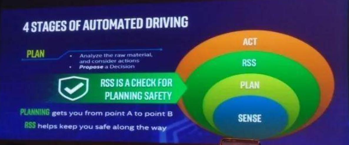 英特尔高级首席工程师、自动驾驶解决方案首席系统构架师Jack Weast在题目为“实现自动驾驶还需面临的挑战”报告中表示“自动驾驶技术的实现需要处理难以想象的海量数据,自动驾驶车辆需要面对现实世界中所存在各种各样的场景,特别是在复杂的都市环境中。“为了使得自动驾驶能够更加安全、快速落地,Intel与MobileEye开发了一套叫做RSS(Responsibility Sensitive Safety 责任敏感安全模型)的体系,希望通过对安全距离等人类驾驶员安全意识的量化界定,使得自动驾驶汽车有能力判断自身的安全状态,从而尽可能避免事故的发生。