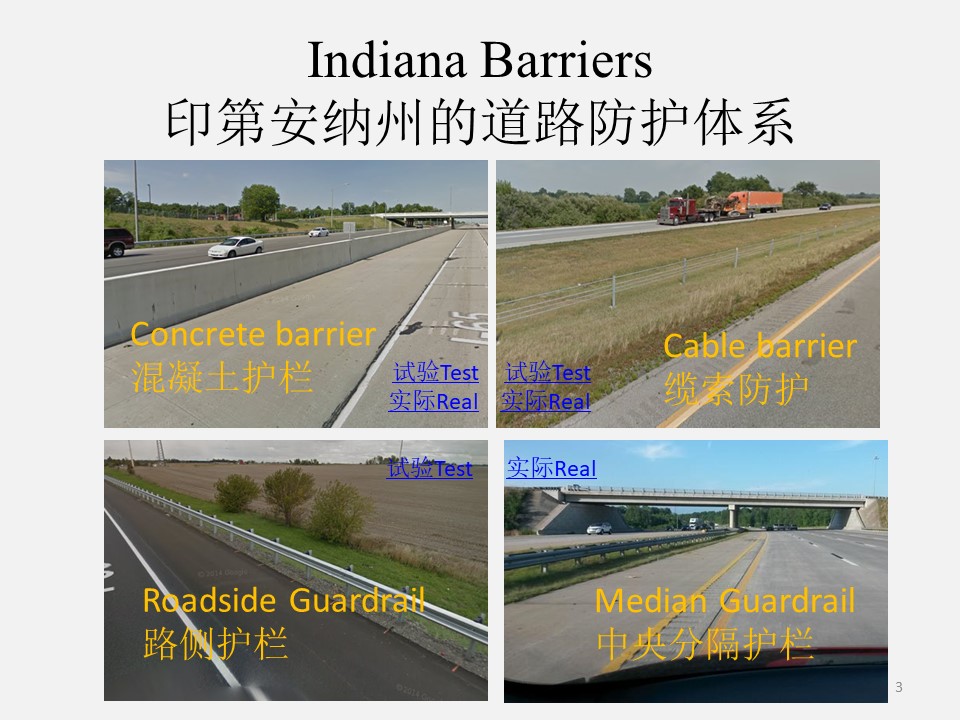 Andrew Tarko教授展示了各类道路纵向护栏的碰撞测试及遭遇实际事故时的情景,并基于碰撞频率分析得到道路纵向隔离栏安全性能参数(SPF)和碰撞修正因子(CMF),根据碰撞事件分析和人身伤害分析估计单位碰撞成本(UCC),与路段设置纵向隔离栏成本相比较,判断现有纵向隔离栏路段的隔离栏安全性能、无纵向隔离栏路段设置隔离栏的经济效益。