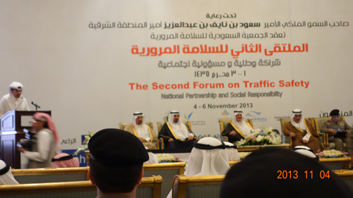 2013年11月,在沙特召开了中东地区的Second Traffic Safety Forum,这次会议的主题是Traffic Safety: National Partnership and Corporate Social Responsibility,主办方邀请王雪松副教授做了大会主题发言,介绍中国近年在交通安全研究和改善方面的进展。