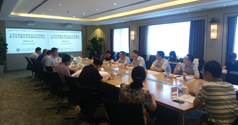 图1 项目启动会议(2015年7月15日);出席专家来自上海科委、市交警总队、市路政局、交通信息中心及同济大学等。