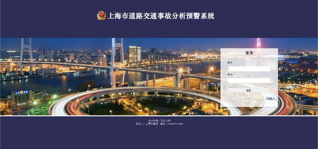 《上海市道路交通安全分析预警决策支持与事故主动管控技术研究》项目(15DZ1204800)由上海市科学技术委员会(以下简称“科委”)资助,由同济大学、上海市公安局交通警察总队、上海市无线电研究所共同承担;项目期限为2015年7月-2017年6月。本项目面向交警日常交通安全管理业务,旨在研发层次化、体系化的道路交通安全管理辅助决策支持技术,全面提升上海市道路交通安全的管理技术水平。