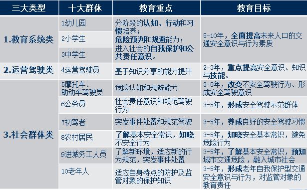 2. 不同受众交通安全科普教育形式研究。针对不同人群的教育内容需求特点和教育是形式适应特点,在现代教育理念的指导下,开发了针对十大类人群的交通安全系列教品。系列主要包括知识手册类教品、培训指导类、游戏活动类等八种类型。