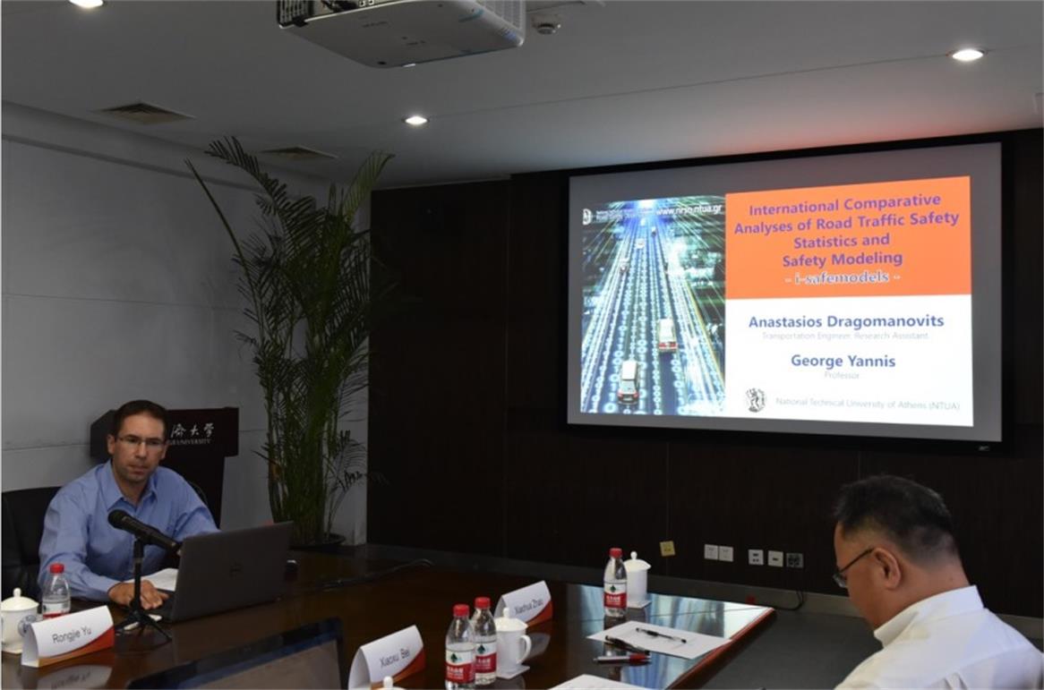 来自希腊合作方雅典国家技术大学的Anastasios Dragomanovits教授介绍了此次项目的基本情况、项目组织框架以及各个阶段的工作计划。此外,Dragomanovits教授详细介绍了希腊合作团队的研究基础以及下一阶段本项目的合作计划。 项目汇报后,中外方专家对项目有关问题展开热烈讨论。项目专家组成员,来自中佛罗里达大学的Mohamed Abdel-Aty教授对项目给予了充分肯定,并对项目促进国际交通安全合作与改善的积极意义做出了高度评价。来自普渡大学的Andrew Tarko教授对道路设施设计的安全评估、事故多发道路改善等研究内容发表了一些独到见解;拉夫堡大学Mohammed Quddus教授相信本研究项目有助于中国等发展中国家充分借鉴全球先进经验,不断稳步推进交通安全向前发展。此外,其他到会的美国、意大利、西班牙、日本、埃及、孟加拉国等国专家也一一发言,并提出了许多建设性意见。 通过本次项目启动会,各课题负责人明确了项目研究内容以及下一阶段工作计划。基于同济大学、雅典国家技术大学和其他国内外合作方的合作模式,有助于通过融合国内外先进交通安全分析与改善技术,以完善我国的交通安全管理体系,同时促进中西交通领域的深入合作,也能更好的服务于“一带一路”现代综合交通运输体系的建设。