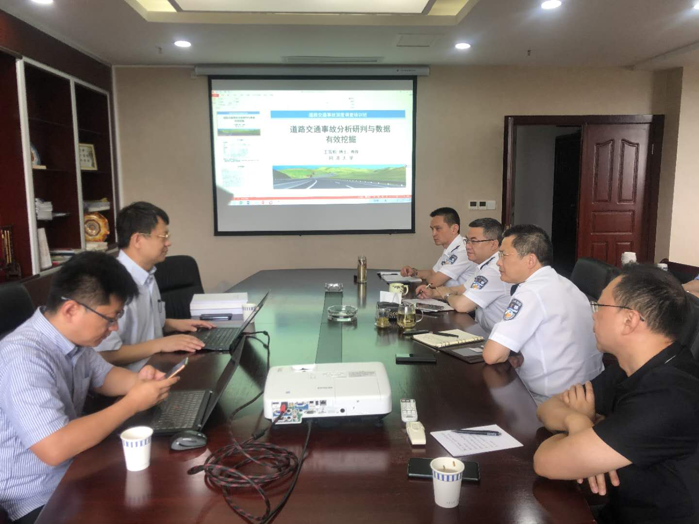 2020年6月27日,贵州省公安厅交管局范军副局长、王斌副局长与王雪松教授进行合作交流座谈。王雪松教授介绍了同济大学道路交通安全管理的科研进展。范军副局长指出,贵州省公安厅交管局与同济大学有着广阔的合作前景,对双方的战略合作提出了三方面建议:一是加强在人工智能、大数据等方面的科技合作,发挥双方的优势,运用道路交通安全分析预警系统,在近期完成贵州省近五年交通事故分析研判报告,为领导决策提供科学依据;二是在科技成果转换、交警系统培训、实战实训方面探索深度合作,为贵州省交警系统储备交通安全分析专业人才;三是签署双方战略合作协议,实现双方在交通安全和管理领域的合作。