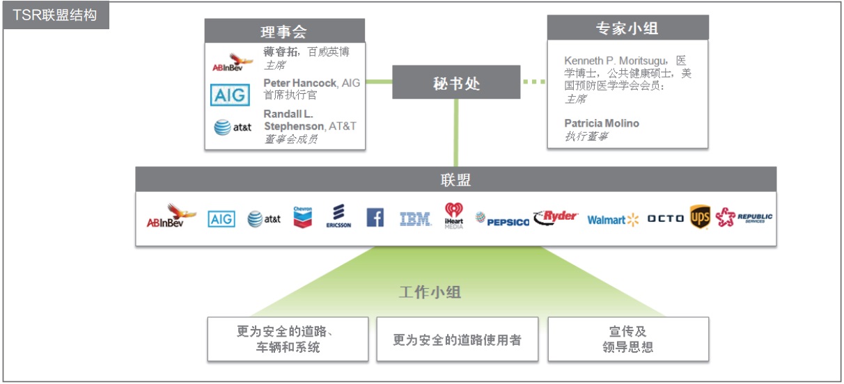 TSR在中国提出了“路安享,车安行,人安心”的愿景;联盟重点开展“事故多发道路的安全改善”和“基于行为分析的营运驾驶员安全教育”两个安全改善项目,并携手各方继续开展交通安全宣传教育。2015年起,联合实验室作为学术指导单位,携手国际联盟TSR改善上海交通安全。