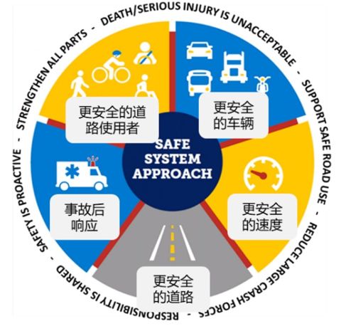 安全系统方法(Safe System Approach)是一种以人为中心的道路安全方法,它强调每一次道路死亡或严重伤害都可以通过安全的道路、车辆、速度、人、事故后处理等多层保护预防的。该方法已被世界卫生组织(WHO)和经济合作与发展组织(OECD)视为道路安全方面的国际最佳实践。