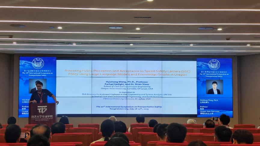 俄勒冈州立大学王海忠教授围绕“基于大语言模型的美国俄勒冈州公众对测速摄像头的认知与接受度评估”发表演讲,分析了测速摄像头在施工区、学校周边及警力薄弱区域的设置,以及由此引发的公平性问题,提出结合问卷调查与AI分析方法,识别公众偏好与潜在担忧,为交通执法政策的科学制定与公平性考量提供了数据支持。