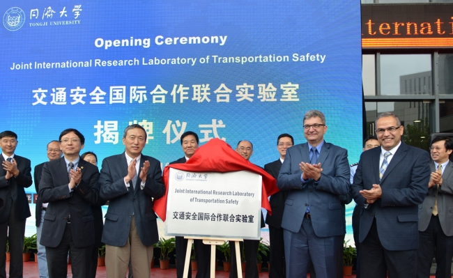 10月29日,同济大学携手美国普渡大学、中佛罗里达大学、德国宇航中心、达姆斯特工业大学、日本东京大学、京都大学等10余所国际著名高校及研究机构共建的“交通安全国际合作联合实验室”在同济大学嘉定校区揭牌成立。这一联合实验室将聚焦国家交通安全重大需求,围绕交通系统的“人—车—路—管理”核心安全保障问题,进行系统性研究,形成国际一流的科研成果;同时汇聚国际交通安全领域的学术大家,引领同济大学交通运输学科尽早成为国际一流学科;并探索联合实验室的国际化运营体制和管理机制,在2020年前将它建设成为国际一流的交通安全实验室。