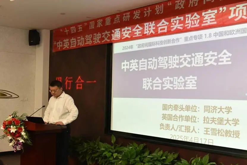 2025年4月17日,同济大学和英国拉夫堡大学联合承担的“十四五”国家重点研发计划“政府间国际科技创新合作”重点专项“中英自动驾驶交通安全联合实验室(2024YFE0115400)”项目启动会暨实施方案论证会在同济大学嘉定校区通达馆102会议室顺利召开。